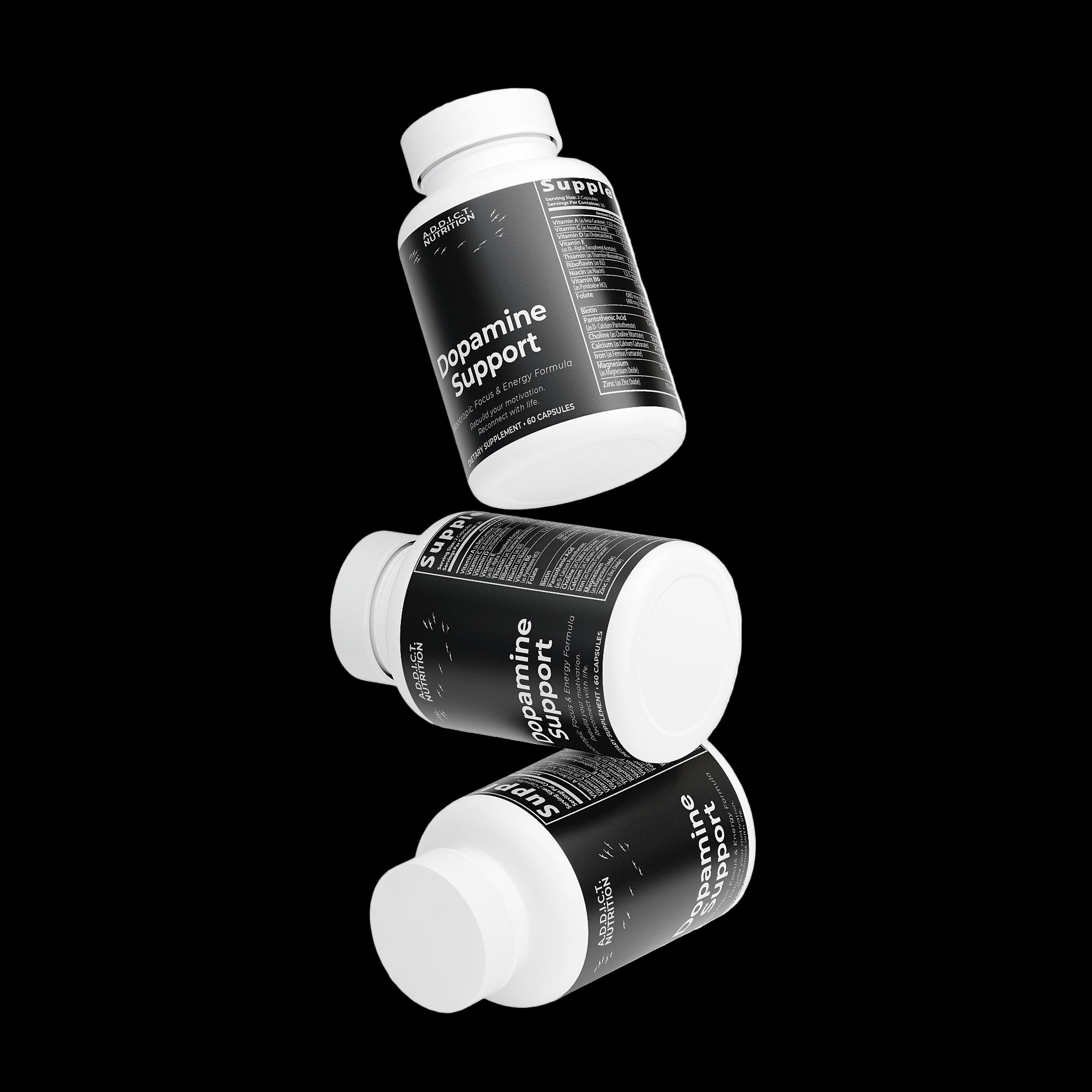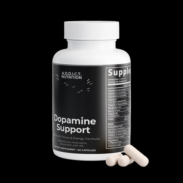 Dopamine Support is a nootropic blend formulated to help support focus, motivation, and cognitive performance. This advanced formula combines key amino acids — including DMAE, L-Glutamine, and GABA — with powerful botanical extracts such as Bacopa and Green Tea, known to promote mental clarity and energy balance.*